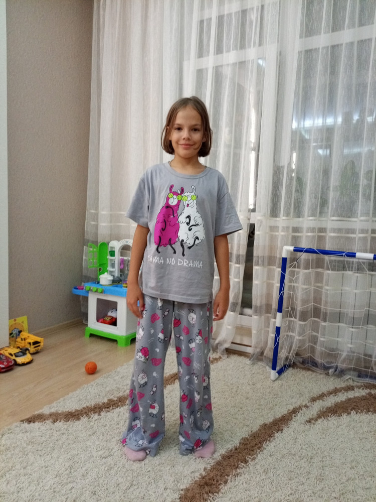 Трикотажная пижама для девочки со штанами — комфорт и стиль для дома! Домашний костюм состоит из брюк палаццо с карманами и футболки оверсайз, что обеспечивает максимальный комфорт и свободу движений. Изготовлена из 100% хлопка, пижама мягкая, дышащая и безопасная для кожи. Брюки с высокой посадкой и свободным кроем отлично подходят для отдыха и сна. Футболка оверсайз добавляет модный акцент. Идеальный выбор вашей девочки для дома и сна!